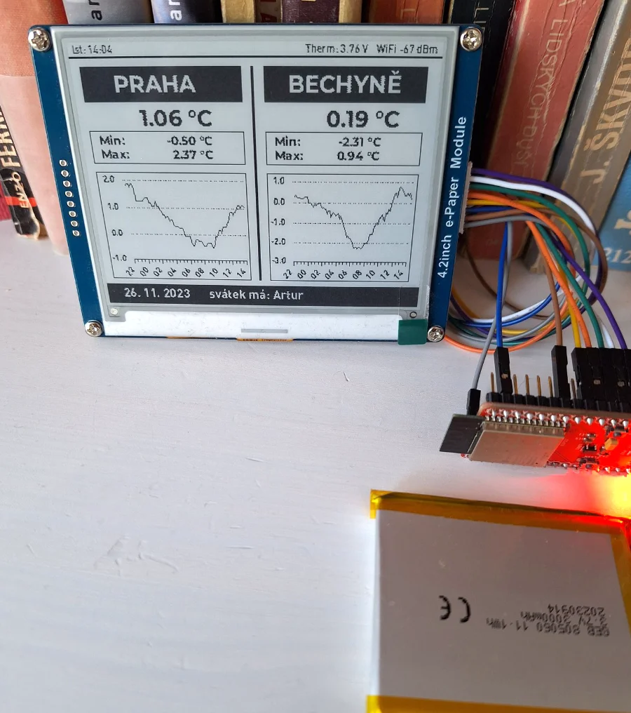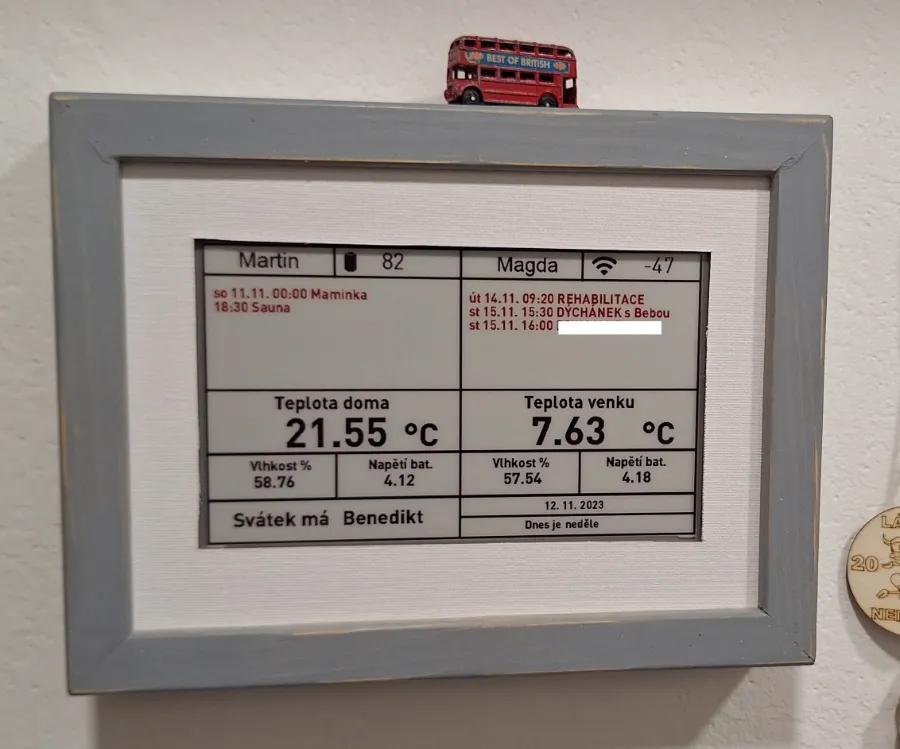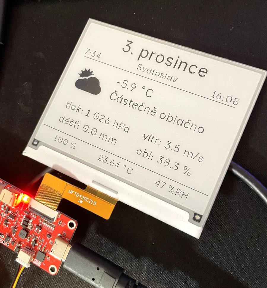 Tvůrce skvělé obrazovky s Počasím (viz galerie v účtu uživatele). Opravil firmware pro správné načtení obrazovky na horší konektivitě. Michal navíc má vlastní výborný open source software na správu ePaperů.