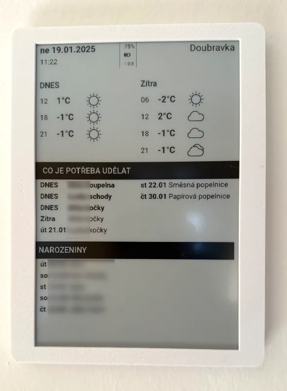 Zalíbila se mi možnost mít doma na zdi kalendář ve stylu hry Portal, který se nemusí často nabíjet a máte každý den něco nového. Představa, že se zobrazí například ještě počasí, svátky, naměřené hodnoty z čidel, a jiné mě ohromně lákala. Jenže jsem tyhle záležitosti nechtěl řešit přímo ve firmwaru vývojové desky, abych kvůli každé změně musel zařízení připojovat k počítači a znovu flashovat.