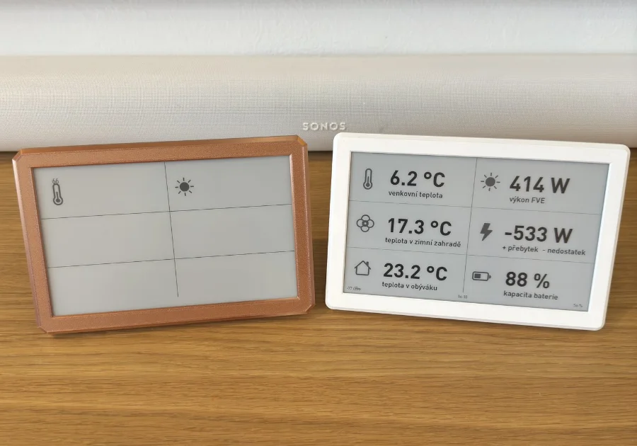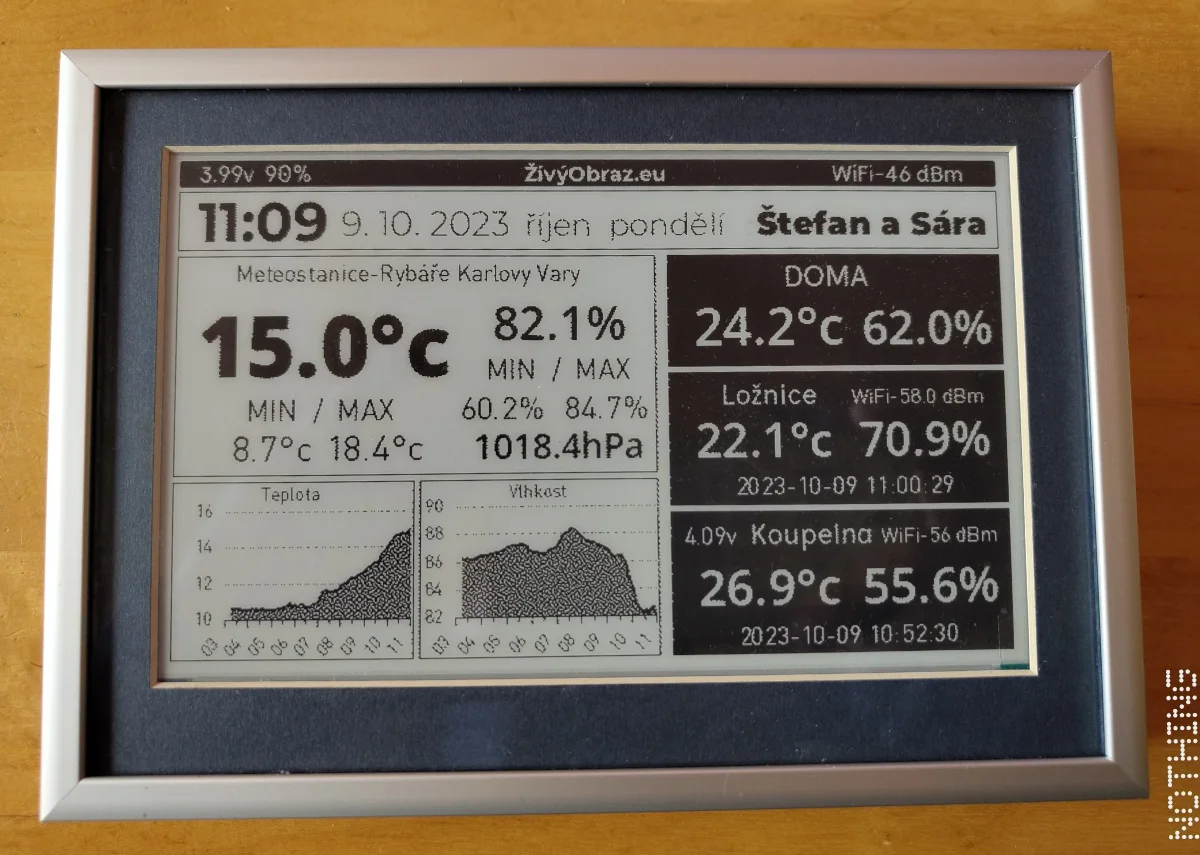 Kdyby šlo do zařízení poslat již sestavený obrázek z internetu, tak by to bylo daleko příjemnější. Pak se rozjel celý kolotoč myšlenek - co kdyby se zařízení uspalo na potřebnou dobu, kterou mu pošle server? Co kdyby se obrázek i tak překreslil pouze tehdy, když dojde k jeho změně? Co kdyby zařízení rovnou na server poslalo naměřenou teplotu, takže by mohlo sloužit jako domácí teploměr? Obrázek do zařízení by se mohl brát z galerie, nebo třeba z libovolného odkazu, nebo by se dala sestavit vlastní obrazovka s prvky, jak já budu chtít... totálně mě to pohltilo.
