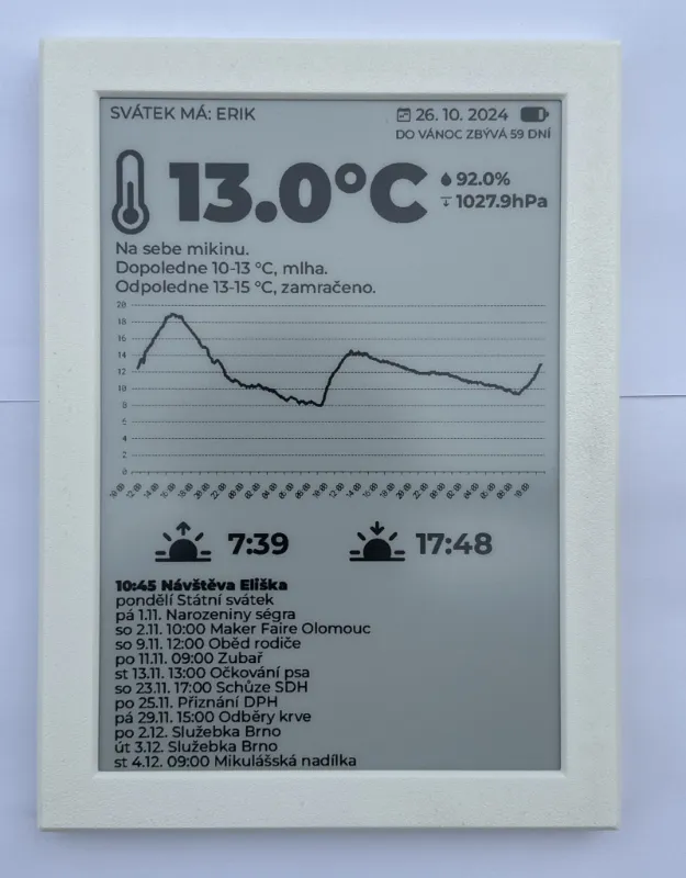 Zalíbila se mi možnost mít doma na zdi kalendář ve stylu hry Portal, který se nemusí často nabíjet a máte každý den něco nového. Představa, že se zobrazí například ještě počasí, svátky, naměřené hodnoty z čidel, a jiné mě ohromně lákala. Jenže jsem tyhle záležitosti nechtěl řešit přímo ve firmwaru vývojové desky, abych kvůli každé změně musel zařízení připojovat k počítači a znovu flashovat.