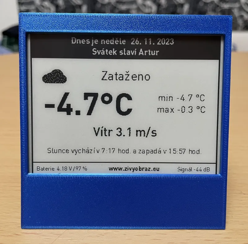 Tvůrce skvělé obrazovky s Počasím (viz galerie v účtu uživatele). Opravil firmware pro správné načtení obrazovky na horší konektivitě. Michal navíc má vlastní výborný open source software na správu ePaperů.