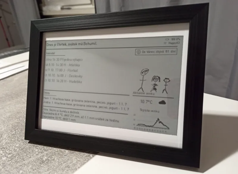 Kdyby šlo do zařízení poslat již sestavený obrázek z internetu, tak by to bylo daleko příjemnější. Pak se rozjel celý kolotoč myšlenek - co kdyby se zařízení uspalo na potřebnou dobu, kterou mu pošle server? Co kdyby se obrázek i tak překreslil pouze tehdy, když dojde k jeho změně? Co kdyby zařízení rovnou na server poslalo naměřenou teplotu, takže by mohlo sloužit jako domácí teploměr? Obrázek do zařízení by se mohl brát z galerie, nebo třeba z libovolného odkazu, nebo by se dala sestavit vlastní obrazovka s prvky, jak já budu chtít... totálně mě to pohltilo.