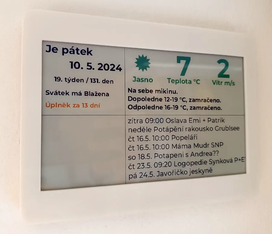 Zalíbila se mi možnost mít doma na zdi kalendář ve stylu hry Portal, který se nemusí často nabíjet a máte každý den něco nového. Představa, že se zobrazí například ještě počasí, svátky, naměřené hodnoty z čidel, a jiné mě ohromně lákala. Jenže jsem tyhle záležitosti nechtěl řešit přímo ve firmwaru vývojové desky, abych kvůli každé změně musel zařízení připojovat k počítači a znovu flashovat.
